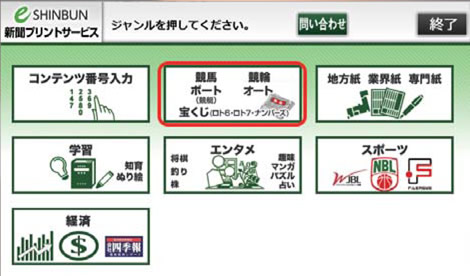 ジャンル選択より「競馬・競輪・ボート・オート・宝くじ」ボタンを選びます。