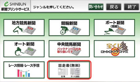 ジャンル選択より「出走表(無料)」を選びます。