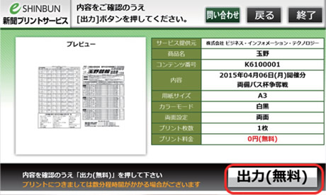 新聞プリントサービス「eプリントサービス」を選びます。